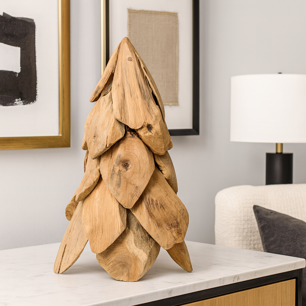 Wykonana z drewna tekowego, choinka łączy w sobie naturalne piękno i trwałość, co czyni ją doskonałym elementem dekoracyjnym przez cały rok. Jej solidna konstrukcja o wadze 2500 g zapewnia stabilność, umożliwiając umieszczenie jej w dowolnym miejscu bez obaw o przewrócenie.