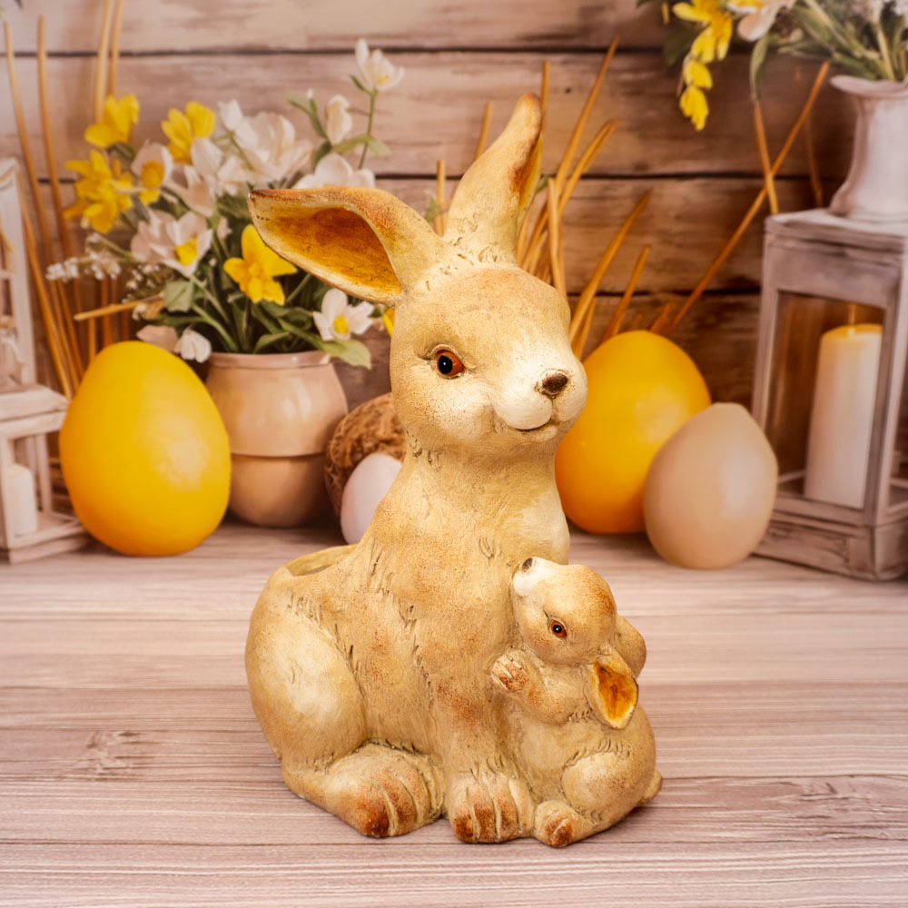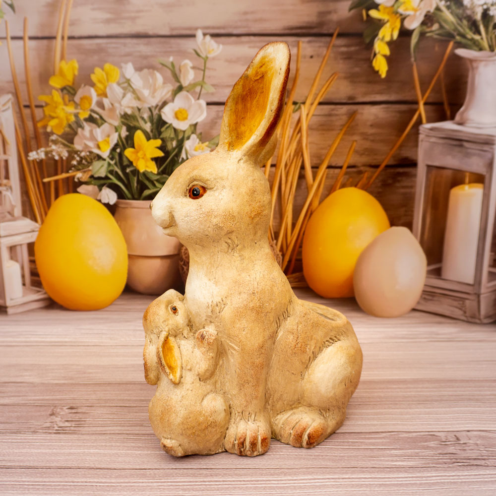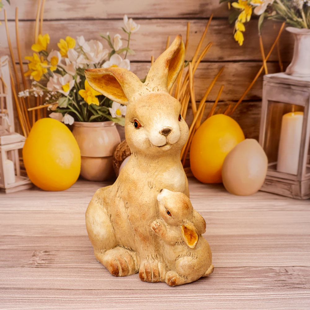 To doskonały wybór dla osób poszukujących eleganckiej, a jednocześnie subtelnej ozdoby wielkanocnej. Figura zająca z maleństwem może być również wyjątkowym pomysłem na prezent, niosącym ze sobą symbolikę wiosny i nowego początku.