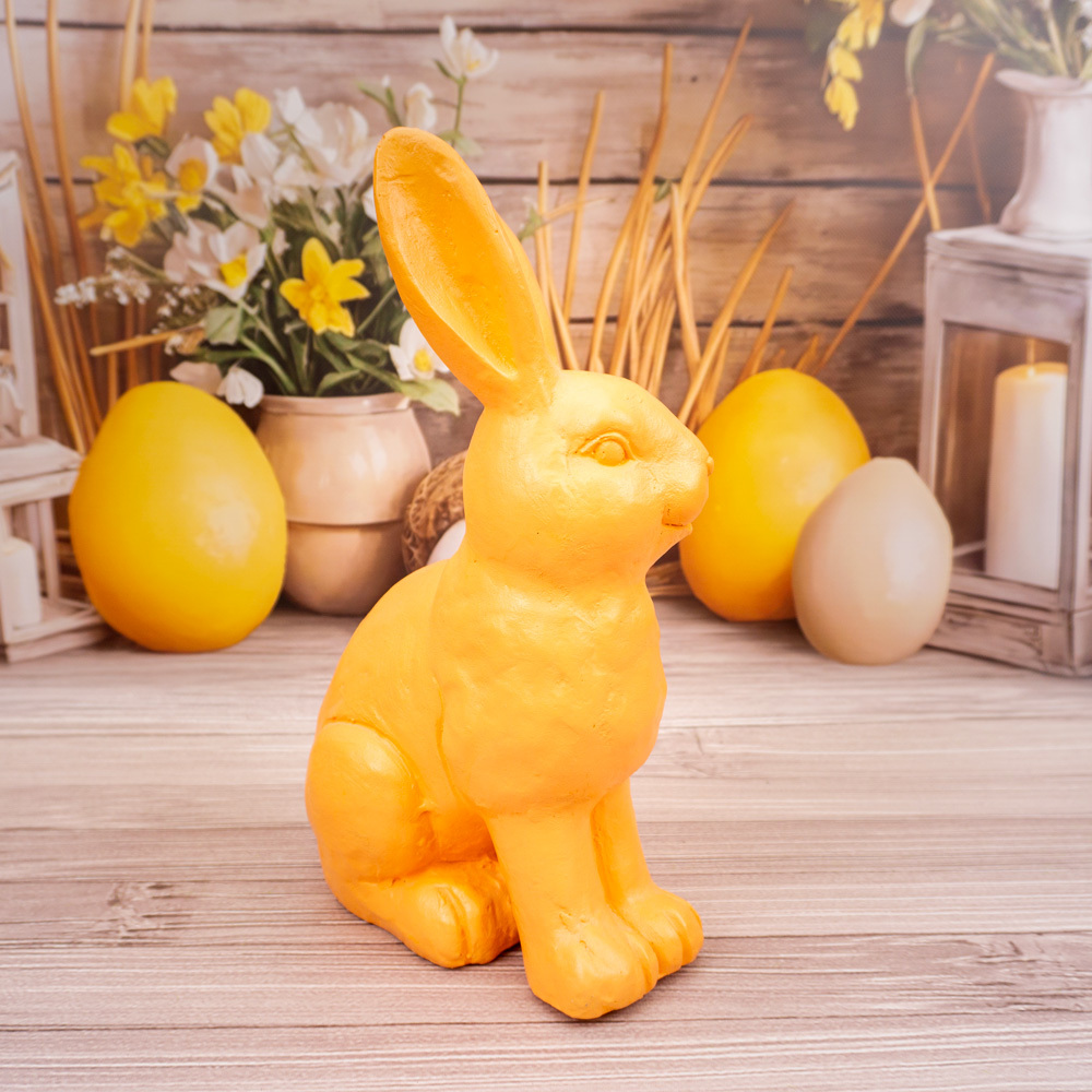 Dodaj wnętrzu radosnego, wiosennego charakteru dzięki efektownej figurce dekoracyjnej w kształcie dużego zająca. Intensywny pomarańczowy kolor przyciąga wzrok i doskonale wpisuje się w aranżacje wielkanocne oraz sezonowe dekoracje domu. Starannie wykonane detale nadają figurce elegancki i jednocześnie przyjazny wygląd, który świetnie sprawdzi się w salonie, jadalni, przedpokoju czy witrynie sklepowej.