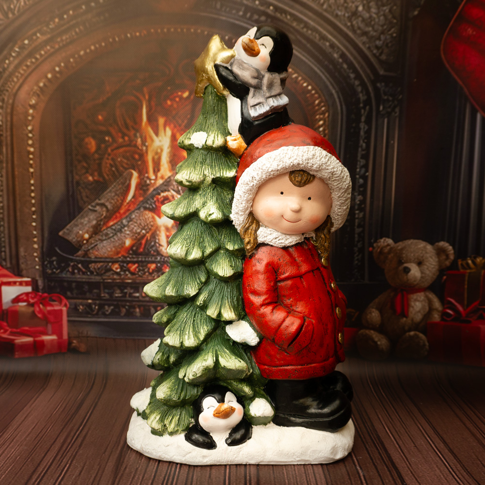 Solis Decor figurka dekoracyjna dziewczynka z choinką