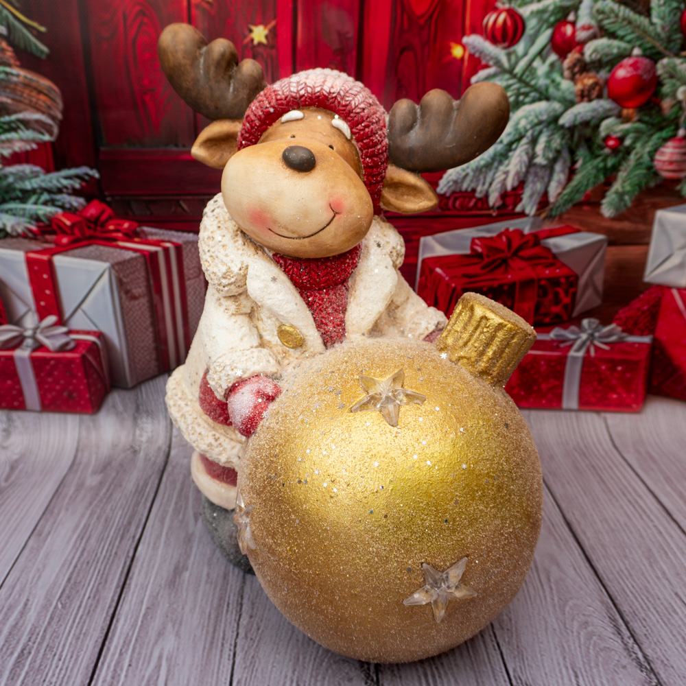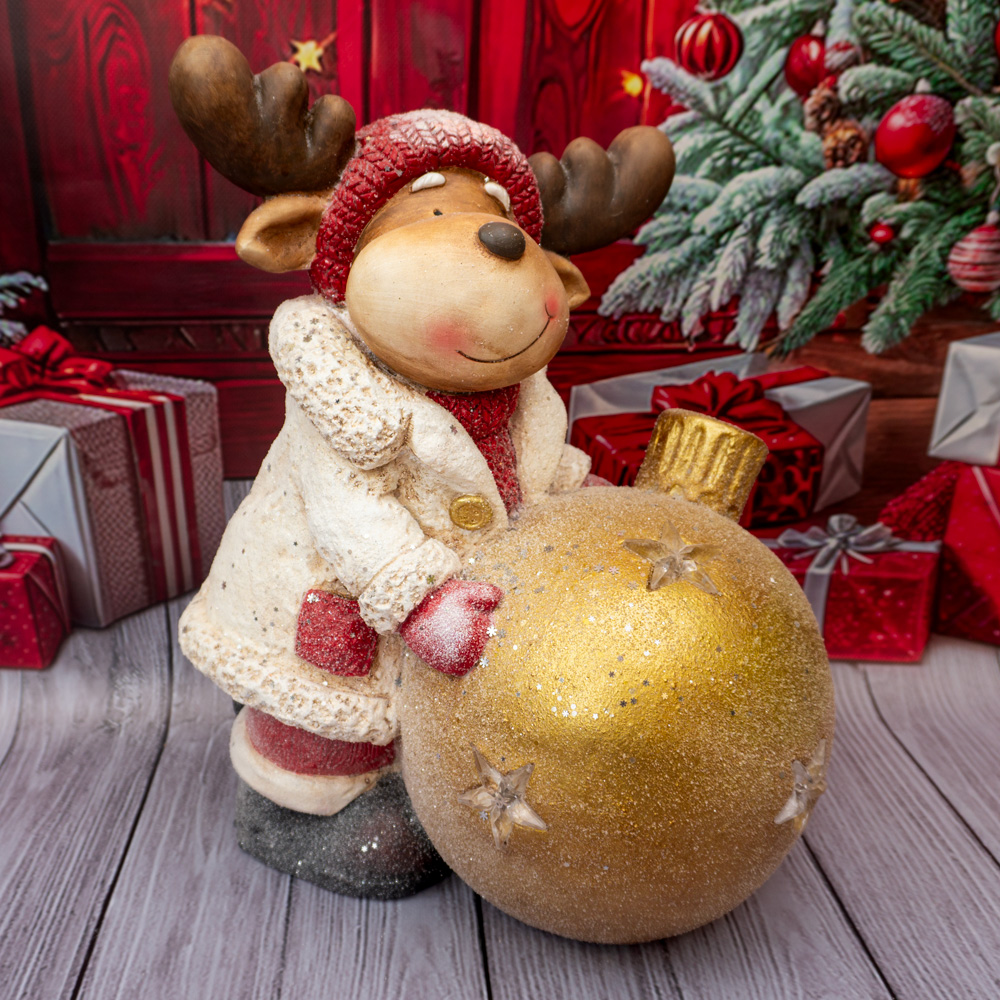 Figurka dekoracyjna Solis Decor renifer z bombką świąteczną
