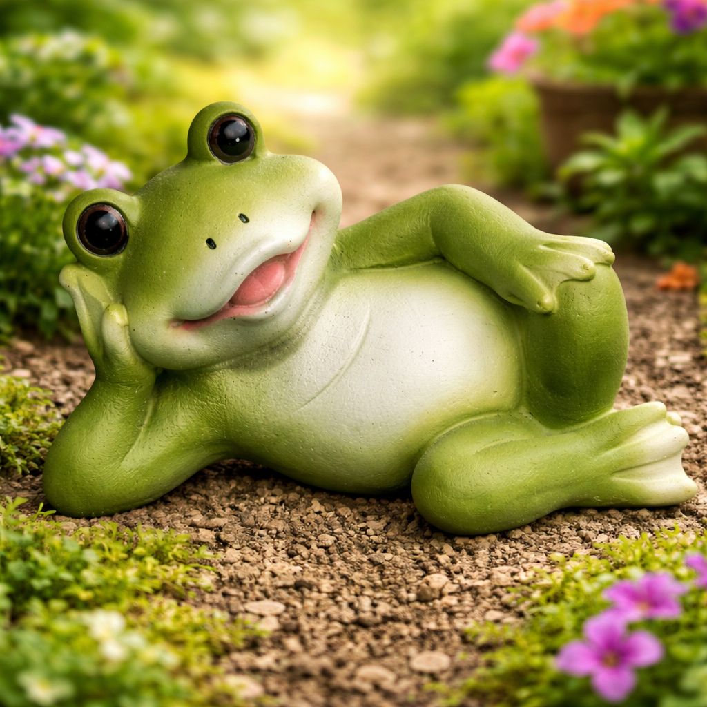 Urocza, leżąca żabka w pogodnej pozie to dekoracja, która od razu wywołuje uśmiech. Swobodna, zrelaksowana sylwetka oraz przyjazny wyraz twarzy nadają figurce lekko humorystyczny i bardzo pozytywny charakter. To idealny akcent do ogrodu, który wprowadzi do przestrzeni radosną, wakacyjną atmosferę.