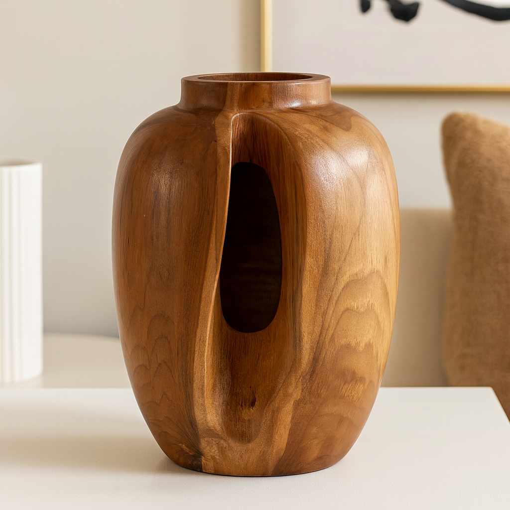 Wybierz Wazon dekoracyjny z drewna tekowego 21.019 i wnieś do swojego otoczenia odrobinę naturalnego piękna i elegancji.