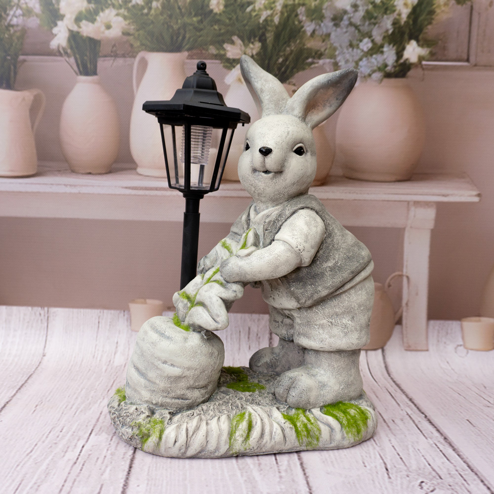 dekoracyjna figurka zająca z latarnią