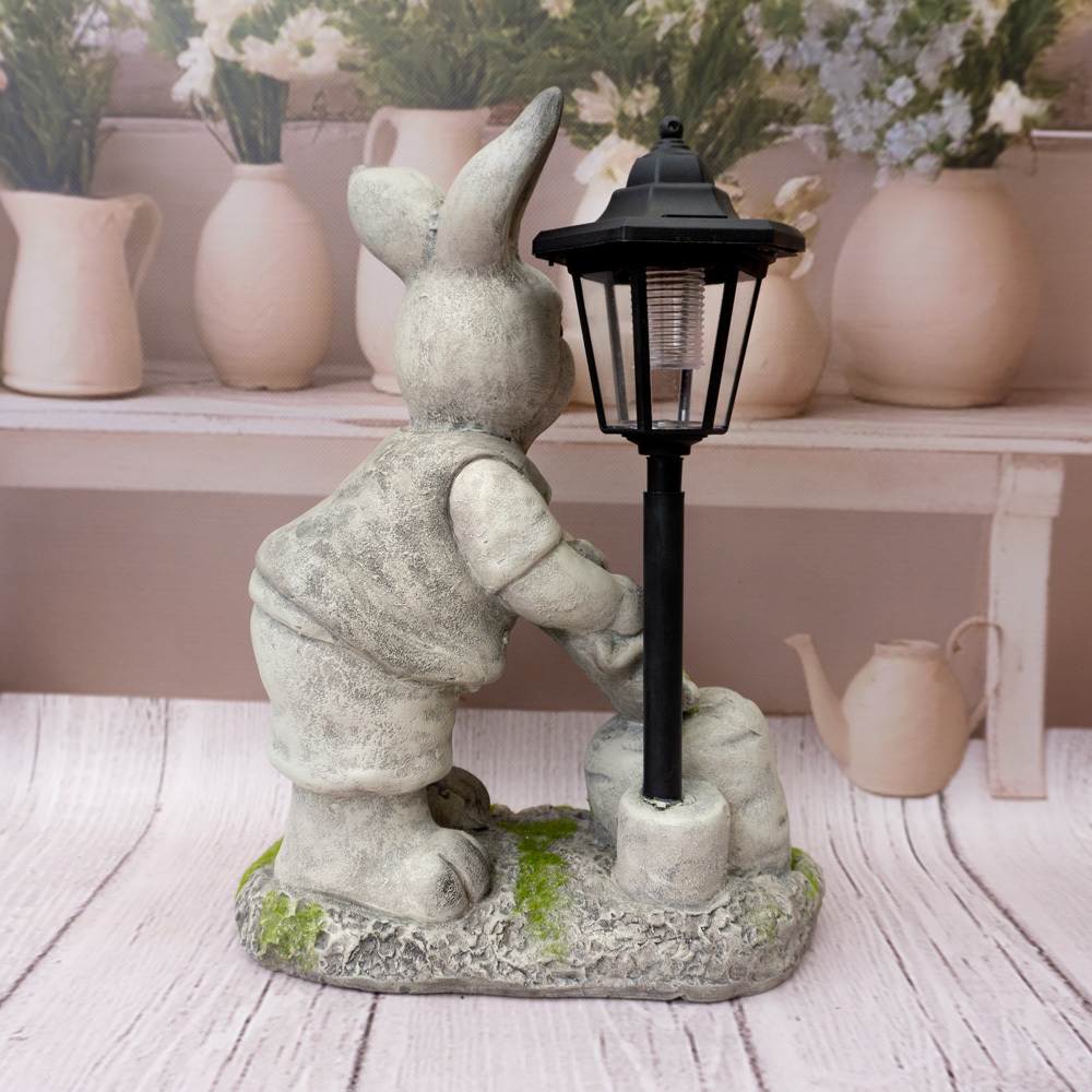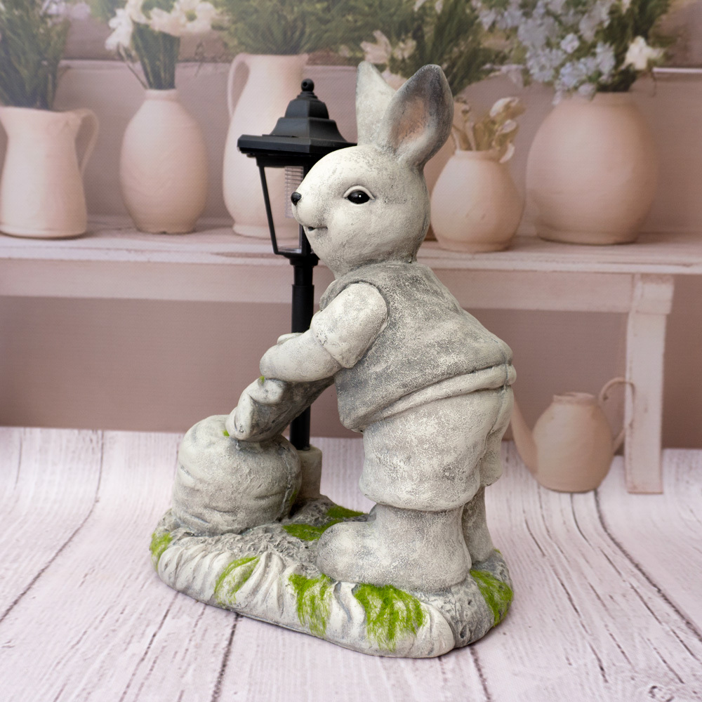Figurka została wykonana z trwałego polyresinu, dzięki czemu jest odporna na warunki atmosferyczne i nadaje się do użytku zewnętrznego. Latarnia stanowi atrakcyjny element dekoracyjny, który pięknie uzupełnia całość aranżacji – szczególnie wiosną i w okresie wielkanocnym.