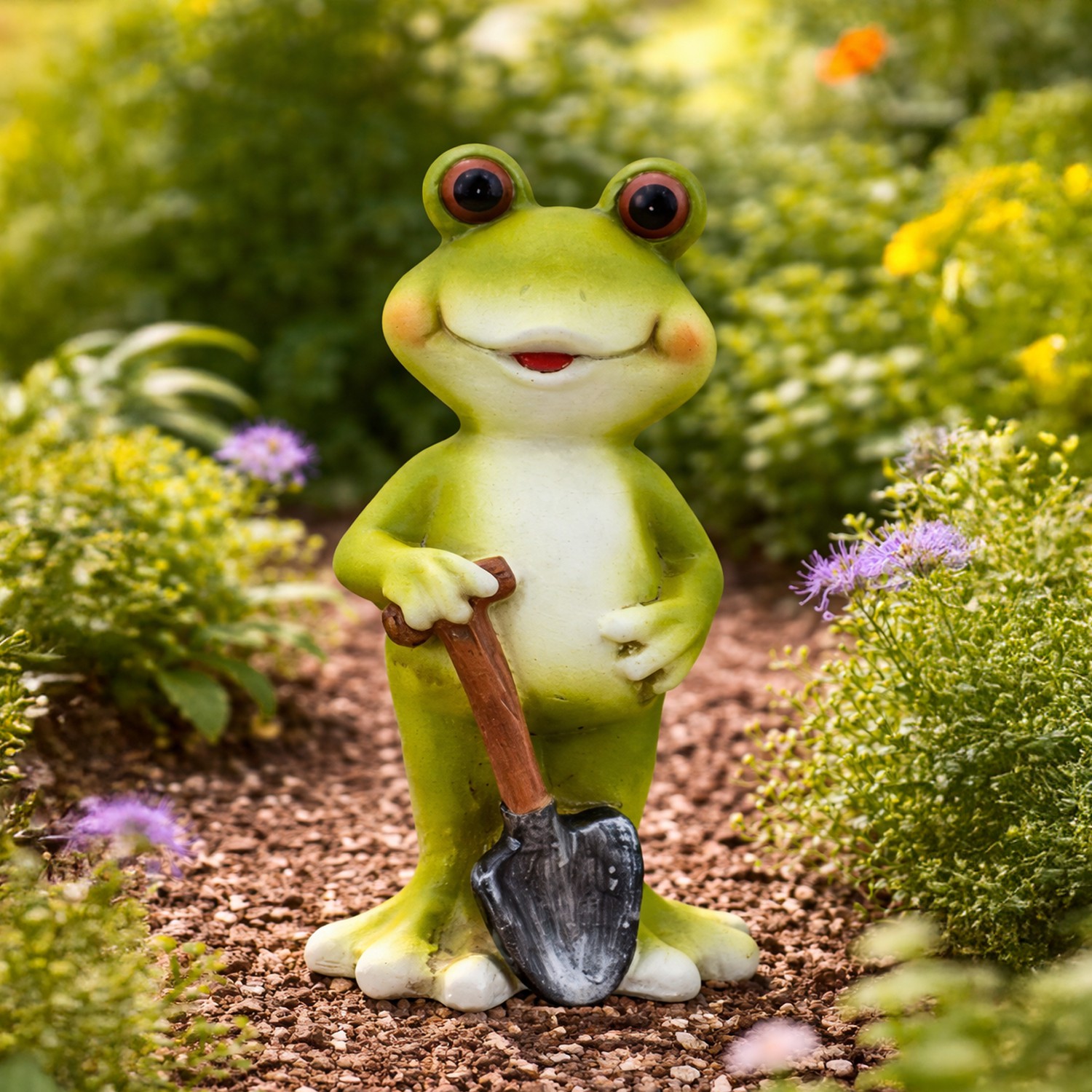 Urocza żabka ogrodowa ze szpadlem to pełna wdzięku dekoracja, która wniesie do Twojej przestrzeni odrobinę humoru i wiosennej energii. Figurka przedstawia sympatyczną żabkę w ogrodniczym wydaniu – z delikatnym uśmiechem i małym szpadlem w dłoni, gotową do pracy na rabacie.