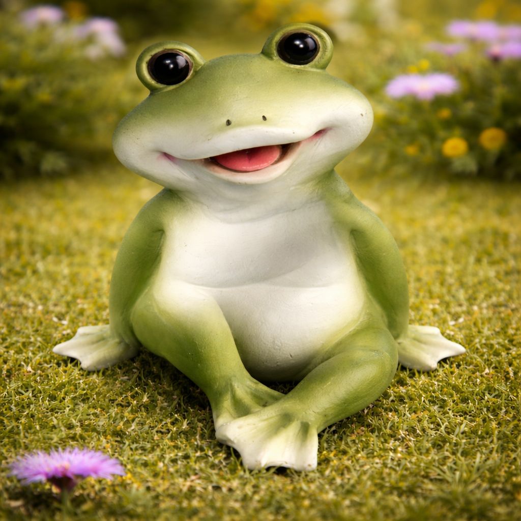 Urocza żabka w swobodnej, relaksującej pozie to dekoracja, która wniesie do ogrodu lub wnętrza pozytywną energię i beztroski klimat. Pogodny uśmiech oraz luźna sylwetka sprawiają, że figurka przyciąga wzrok i wywołuje uśmiech – idealnie podkreślając wypoczynkowy charakter przestrzeni.
